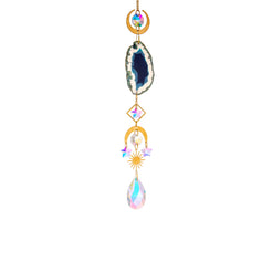 Agate Suncatcher with Crystal Prisms & Sun/Moon Celestial Charms