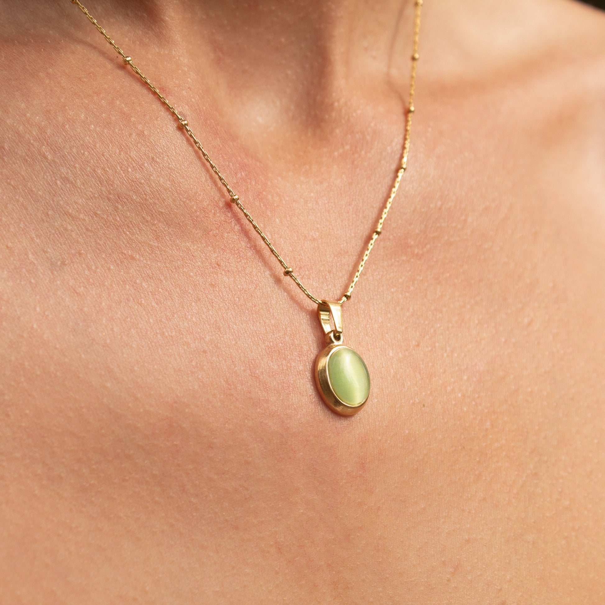 Refined and sophisticated, this top seller features a soft yet luminous green cats eye opal. The Green Orbis Necklace is a reflection of serenity and renewal, inspired by the harmony of nature.