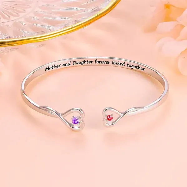 MOTHER AND DAUGHTER FOREVER LINK DOUBLE HEART CUSTOM BIRTHSTONE BRACELET