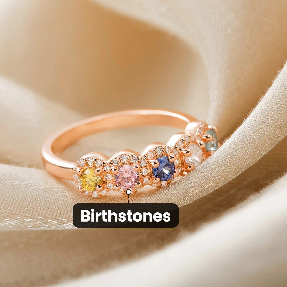 Personalized Elegant 1-5 Birthstones Ring with Mothers' Day Birthday Gift for Mom Grandma
